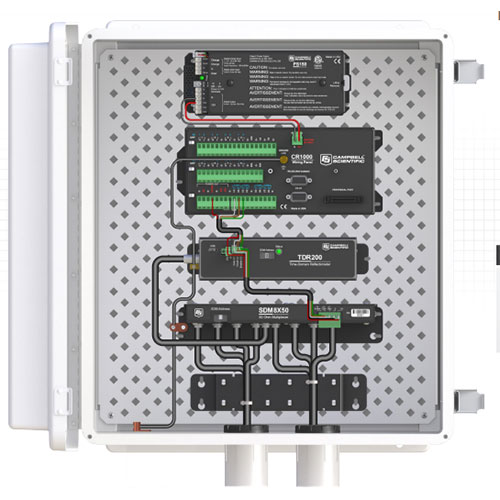 TDR系統(tǒng)的主要組件是CSI 數(shù)據(jù)采集器、TDR200反射計(jì)、SDMX50系列同軸多路器、連接電纜和TDR探頭。