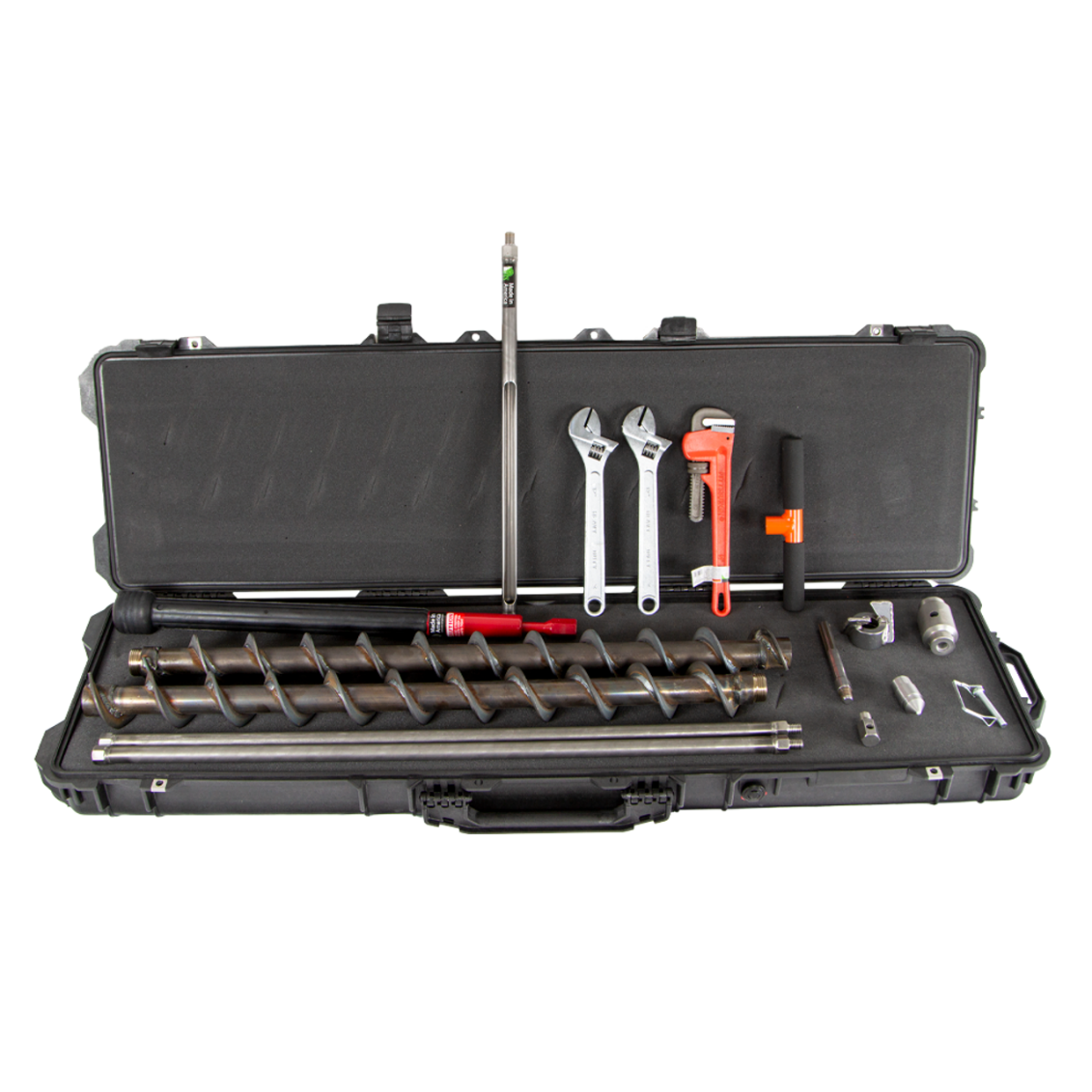 套件組成 | 214.20 - (1) 5/8英寸螺紋外螺紋至 SDS Max 電鉆適配器 409.51 - (2) 3英尺螺紋式延長桿 409.75 - (1) 中空飛輪螺旋鉆切割尖端 409.61 - (1) 中空螺旋鉆頂蓋適配器 409.60 - (2) 3英尺中空螺旋鉆內桿 409.58 - (1) 中空螺旋鉆內塞 64106 - (1) 帶銷孔的中空桿固定器配件 24390 - (1) 線鎖 U 形夾銷 401.04 - (1) 7/8英寸 X 21英寸土壤探針,帶手柄 421.10 - (2) 12英寸活動扳手 14327 - (1) 14英寸管扳手 400.99 - (1) 常規(guī)滑動錘 430.01 - (1) 4英尺豪華手提箱 |