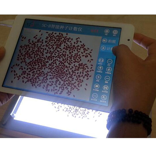 概述:SC-H2型智能種子數(shù)粒儀由平板電腦、智能種子數(shù)粒軟件、背光裝置組成。主要用在農(nóng)業(yè)上對(duì)作物快速測(cè)產(chǎn)、考種等場(chǎng)合,以有效替代人工數(shù)粒或機(jī)械式自動(dòng)數(shù)粒。?功能特點(diǎn):1、由≥7寸平板電腦拍照種粒,軟件便自動(dòng)計(jì)數(shù)和輸出種子數(shù)量。2、由添加、刪除的個(gè)別指點(diǎn)修正,可使數(shù)粒達(dá)100%準(zhǔn)確率。3、可查看結(jié)果表、導(dǎo)出至EXCEL,以及向指定接收方上傳數(shù)據(jù)。4、高亮LED燈背光裝置使種粒識(shí)別更穩(wěn)定,可