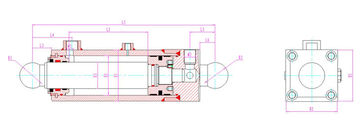 | 產(chǎn)品型號 | 行程 | 安裝距 | 額定壓力 | L1 | L2 | L3 | L4 | L5 | L6 | D1 | D2 | D3 | R1 | R2 | B1 | B2 | M1 | M2 |