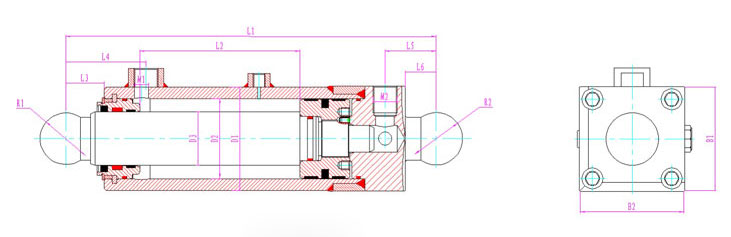 | 產(chǎn)品型號(hào) | 行程 | 安裝距 | 額定壓力 | L1 | L2 | L3 | L4 | L5 | L6 | D1 | D2 | D3 | R1 | R2 | B1 | B2 | M1 | M2 |