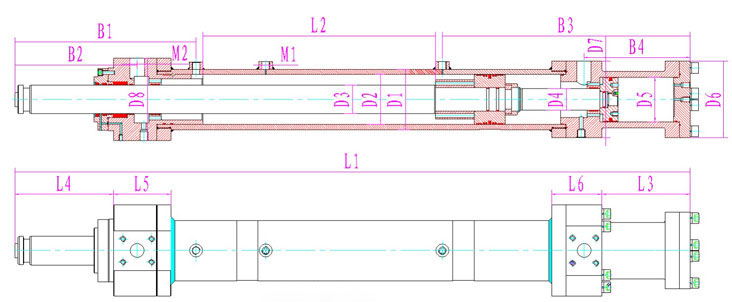 | 產(chǎn)品型號(hào) | 行程 | 安裝距 | 額定壓力 | L1 | L2 | L3 | L4 | L5 | L6 | D1 | D2 | D3 | D4 | D5 | D6 | D7 | D8 | B1 | B2 | B3 | B4 | M1 | M2 |